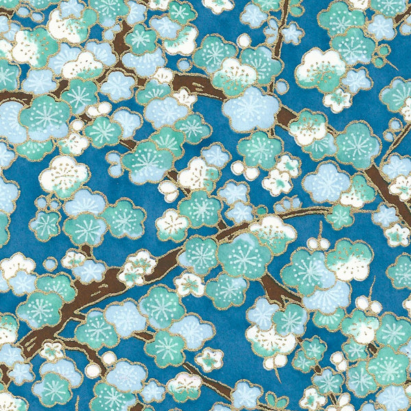 Boîte à mouchoirs - Fleurs de pruniers bleues et vert d'eau sur fond bleu - M448